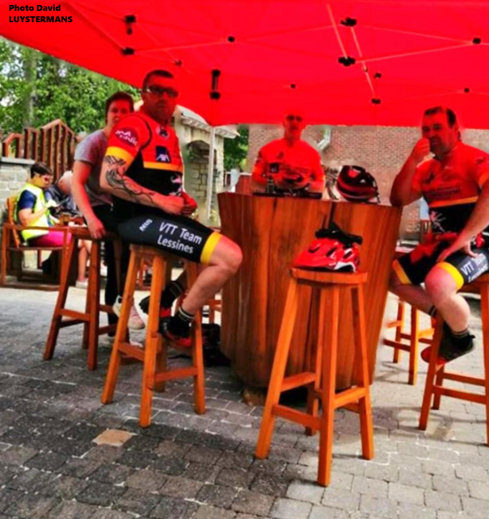 Le weekend dernier, un premier groupe du « VTT TEAM LESSINES » s’est trouvé à FLOREFFE. Une belle balade et un nombre incroyable de participants. L’ABBAYE et ses alentours valent le détour (sur site). Mais il y avait également un groupe qui a préféré visiter notre contrée. Avec un arrêt chez le sponsor de « LA QUINTINE » à Ellezelles. Pas de bol, c’était fermé. Ils se sont rabattus sur le « CHALET GERARD » flobecquois (pas « REYNARD » comme au « VENTOUX » hohohoho). Nous constatons que le club a de l’ambition. Il en faut pour progresser et se faire connaître. Nous l’aiderons en cas de besoin. DavidL nous informe qu’il peut compter sur MaxB pour préparer les circuits. Il fait découvrir des coins que tous ne connaissent absolument pas. Top !!! La bonne ambiance règne dans ce second groupe qui est accompagné d’une dame depuis quelques semaines. Accrochez-vous Madame !!! Les plus costauds ne sont pas ceux qui parlent le plus !!! Et manifestement vous savez pédaler !!! Top !!! Le team a quelques projets dans son sac. Nous lui souhaitons de les mener à terme. #Soutien