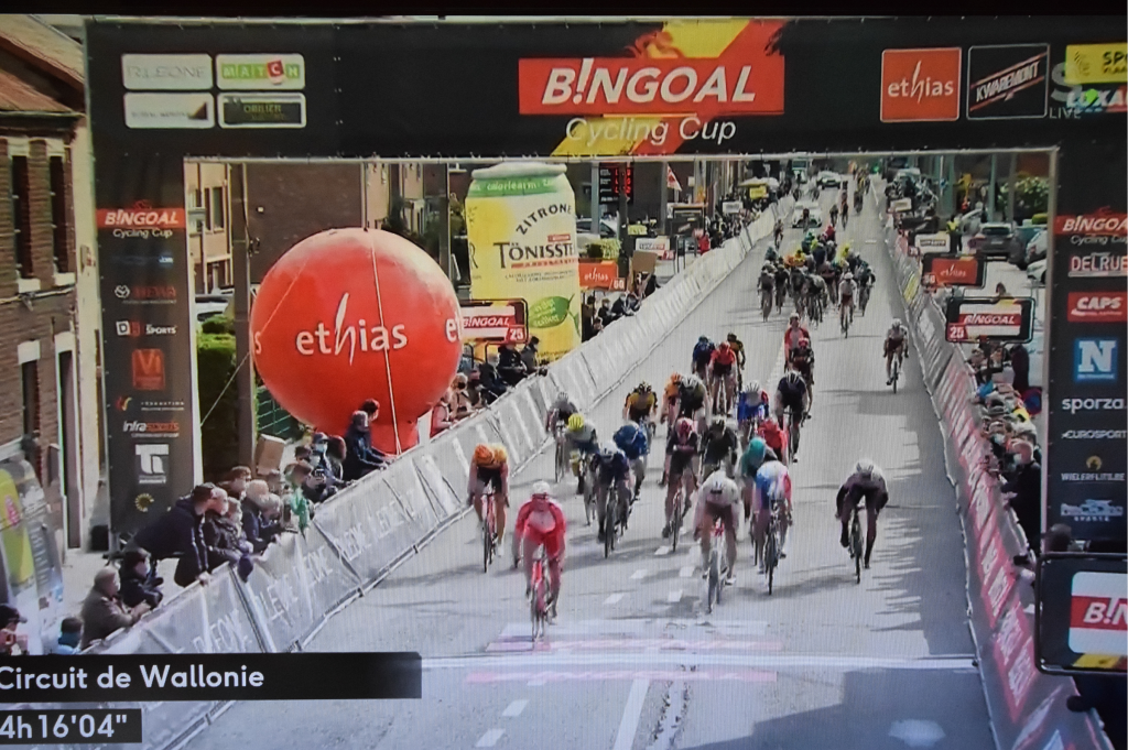 MONIQUET Sylvain n’en rate pas une pour mettre les couleurs « LOTTO-SOUDAL » sous les projecteurs. Tout comme Tim WELLENS. Le jeune français, Théo DELACROIX, du team « INTERMARCHE-WANTY-GOBERT » marche bien pour sa première saison. Enfin, nous serions incomplets si nous ne parlions pas de ce sacré Lorenzo GERMANI (italien-19 ans/GROUPAMA-FDJ-CONTI) qui, non seulement attaque, mais en remet une couche en vue de l’arrivée. N’oublions pas COOLEN et DE POORTER qui ont fait le boulot. Et ANIOLKOWSKI qui aide bien « BINGOAL-PAUWELS-WB » avec sa 4e place. Top !!! Mais quel beau parcours !!! Et les voiries … superbes. Les paysages !!! La « Botte du Hainaut » a réellement des attraits touristiques comme : les Lacs de l’Eau d’Heure ou encore l’Abbaye D’Aulnes, les charbonnages, … . Revenons à la course. Elle fut palpitante. Ce circuit était bien costaud. Sinueux et bosselé. D’échappées en échappées, c’est finalement un gros peloton qui se disputera le sprint. Les « ARKEA-SAMSIC », « AG2R-CITROEN »et « COFIDIS » étaient au taquet. Tout le monde voyait SARREAU l’emporter tant il était bien emmené par plusieurs équipiers. Il poussait très/trop « petit ». Le rapide et rusé Christophe LAPORTE a gagné avec une aisance incroyable. Il est bien celui qui est en forme depuis le mois de janvier. Et s’il garde ce tonus, le TOUR n’a qu’à bien se porter !!! Félicitations, autant au vainqueur, qu’aux organisateurs !!!