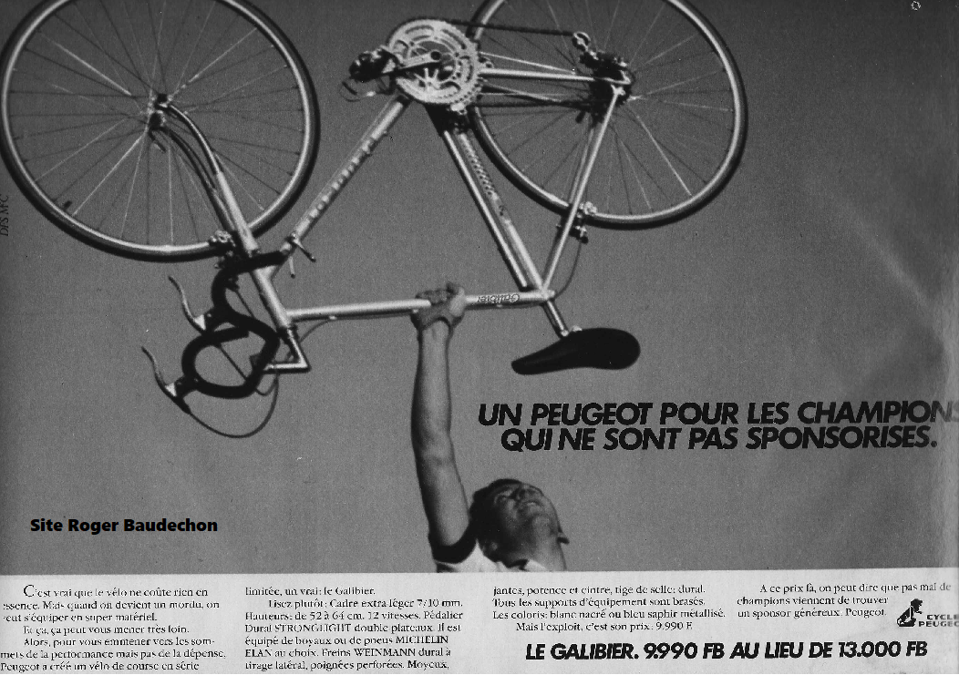 Dernièrement, une très belle affiche nous a permis de retracer l’histoire de la marque « PEUGEOT ». Après quelques recherches, nous avons retrouvé une publicité du « GALIBIER » de l’année 1981. Avez-vous vu le prix ? 9.999 FB soit l’équivalent de 250 €. Oui, vous avez bien lu. Cela pose énormément de questions !!!