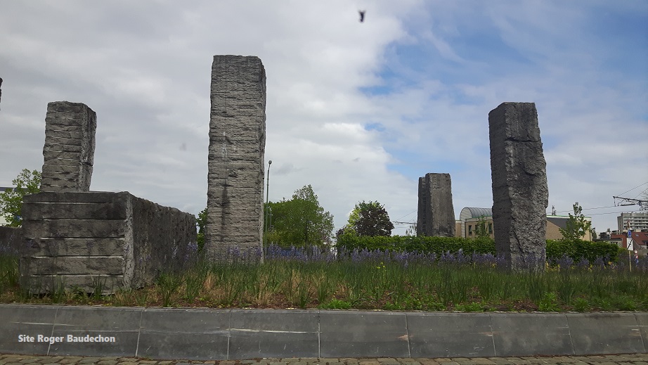 Que vous soyez en vélo, à pieds ou en voiture. En tram ou en bus, le rond-point de DROGENBOS/UCCLE ne peut vous laisser indifférent. Par acquis de conscience, nous nous sommes rendus au Parc Watterman (Lessines) pour voir si l’œuvre de René Magritte – « VIRAGE AUX IDEES CLAIRES » en langue braille – se trouvait toujours en son milieu. Mais quelle copie (presque) conforme. A Lessines, il est fait allusion à l’illustre peintre. A Bruxelles, il s’agit de la liégeoise Florence FRAISON qui en est à la conception. Ayons l’honnêteté de dire que des similitudes existent.