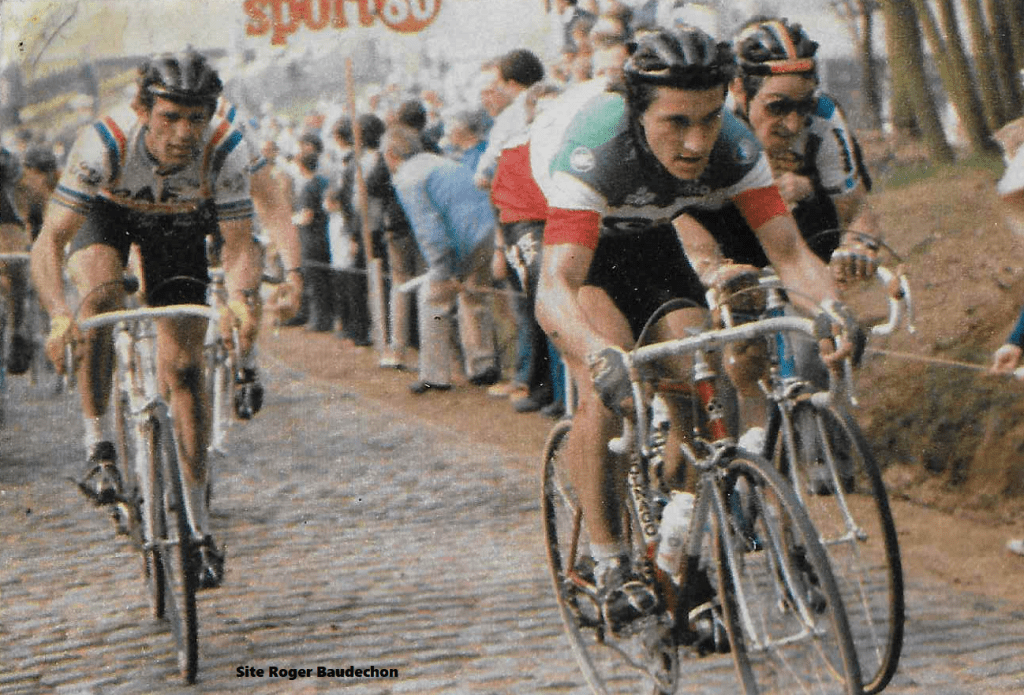 Giuseppe SARONNI a 63 ans. Il est italien de souche. Il a été pro de 1977 à 1990. Ce que nous retiendrons surtout, ce sont ses titres de champion du monde et d’Italie. Victorieux à deux reprises du « GIRO ». Mais en Belgique, ce natif de Novare a marqué les esprits sur « LA FLECHE WALONNE » et sur « LIEGE-BASTOGNE-LIEGE ». Bien entendu, ceci est limitatif car il s’est imposé sur de nombreuses épreuves. SARONNI était un grand champion italien qui aimait les courses accidentées.