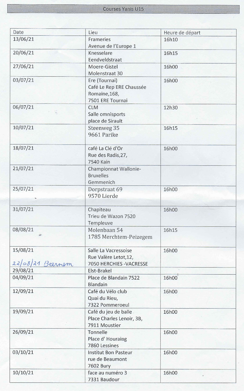 Le programme restera sur le bord droit du site jusqu’en fin de saison. Les modifications seront annoncées. Merci encore à LaurentD pour le transmis. Les résultats de FRAMERIES seront publiés dans « LES RESULTATS DE LA SEMAINE » dès lundi matin.