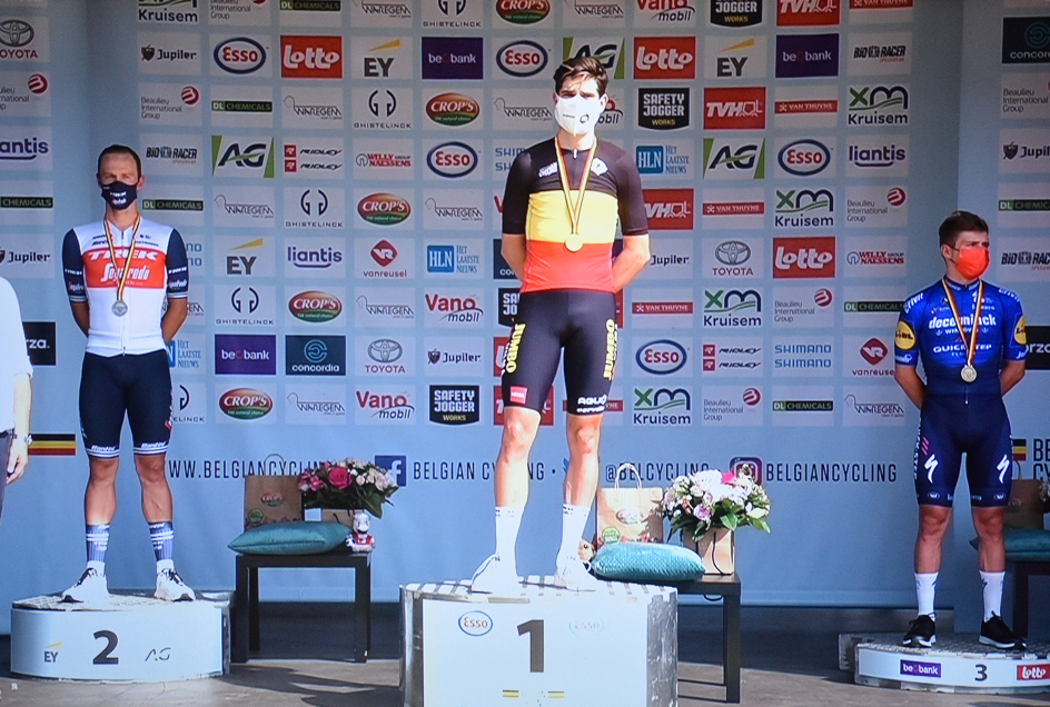 Nous avons assisté à un très bon championnat de Belgique sur route. Le TRES nombreux public sur place a passé une journée d’anthologie. Tant chez les dames que chez les messieurs, le suspens nous a tenu en haleine. Nous n’avons quasiment pas vu KOPECKY. Elle s’isole et va au bout du bout. Elle remporte un second titre. VAN AERT n’a pas fait autre chose, laissant à son équipier VAN HOOYDONCK, le soin de tout cadenasser. Puis quand vint la bonne, il est avec. VAN AERT opéré de l’appendicite il y a un mois, portera le maillot tricolore durant un an. L’aspect sportif passera au second plan quand il évoquera le décès de l’un de ses amis. (cancer) EVENEPOEL troisième semblait déçu. Il n’en reste pas moins qu’il a fait une course de costaud. THEUNS Ed, 2eme. Ce coursier bien sympathique a compris qu’il était passé à côté de la montre en or. Bonus + à MOLLY et à VAN MOER – échappée. A MENTEN 5e. Chez les dames, bonus + à Alana CASTRIQUE 3e et championne de Belgique des espoirs. A Justine VROMANNE qui est 45e.