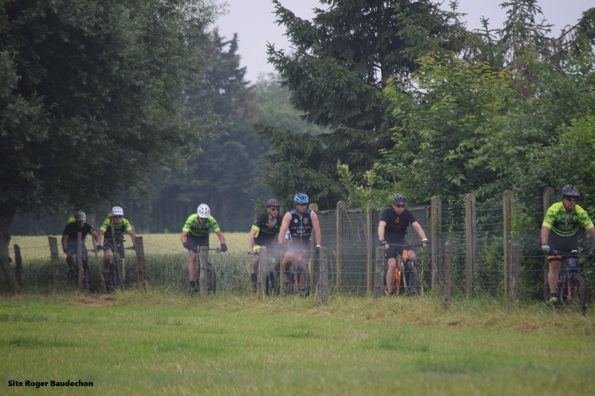 Brouillard le matin. Soleil vers 08h30. Pluie et orages à 11h15. Ils auront tout connu. Entre 07h30 et 10h00, les bikers sont arrivés par grappes entières. Au niveau du jeu de balle, les mesures étaient affichées et les produits sanitaires disponibles. Un grand chapiteau ouvert pouvait accueillir le public en extérieur. Les trois parkings proches furent vite remplis. La Chaussée Richet également. Les parcours étaient constitués de beaux chemins et sentiers. Des ruelles avaient été ajoutées pour rendre la randonnée plus intéressante. Les organisateurs avaient souhaité rester un maximum sur l’entité pour faire profiter des lieux. Un peu aussi sur Flobecq. Le ravito se tenait près de l’entrée du château de Bois-de-Lessines. Le géant L’ARCHER était de sortie. Les rouleurs venaient de partout pour pratiquer. De très loin même. Remarquons une grande présence de lessinois dont EricS, SergeD, ThomasD, GrégoryS, FabriceV, PascalV, … . !!! Et les « CYCLOS DE SAINT-ROCH ». Les néerlandophones avaient fait le déplacement. Le passage dans les deux carrières de la C.U.P fut très apprécié. Finalement, le « VTT TEAM LESSINES » a rempli son contrat. Il pouvait compter sur une grande équipe de bénévoles. Pour une première, c’est TOP. Un bien beau dimanche !!! #BravoPourCetteRandonnée