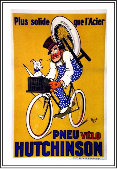 Vous avez déjà sur site une explication concernant les « PNEUS HUTCHINSON » via une affiche ancienne : « De belles images ». Mais nous ne pouvions pas faire sans publier celle-ci. #TropBandeDessinée!!! Il y a un peu des « PIEDS NICKELES » là-dedans (« RIBOULDINGUE », le barbu et joufflu est conducteur du cycle). Lol !!!