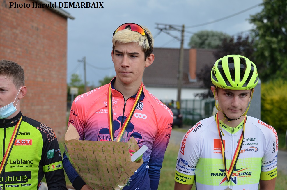 MIN 7-8 >>> 1 DE BAEREMAECKER 2 PIETERS 3 DECLERCQ … 8 BEISE CL … L’école de cyclisme de Mons-Borinage-Haut Pays est bien représentée.