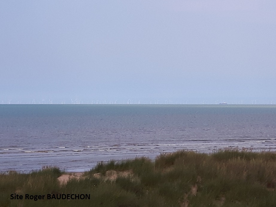 Par très beau temps comme c’est le cas en ce moment, la Manche est dégagée. La Mer du Nord nous montre un trésor généralement invisible. Un de ses Parcs Eoliens situé face à Zeebrugge (il y en a plusieurs). #AVosVélos!!! (image de modeste qualité)