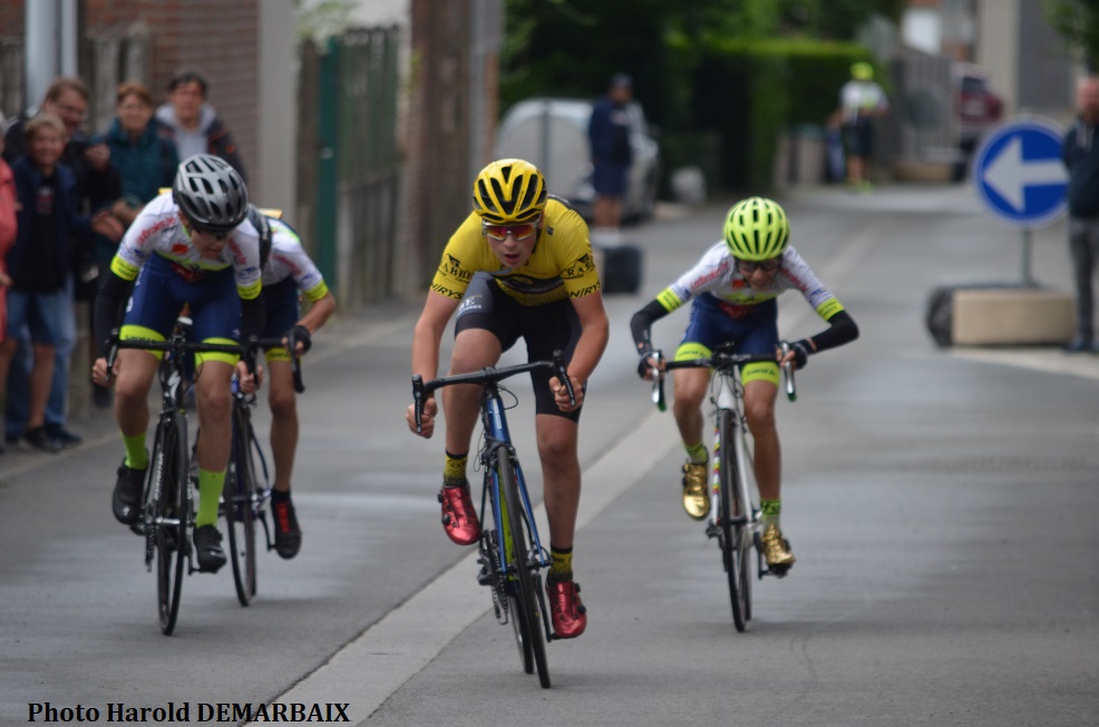 Le lessinois Yanis DUBOIS était à Herchies-Vacresse ce dimanche. Tout continue à tourner. C’est un peloton de 28 coureurs qui attendait les spectateurs au niveau des U14. Voici ce que nous dit HaroldD qui était sur place : « Départ sur les chapeaux roues. Un coureur prend le large. Le champion « Wallonie Bruxelles » fera toute la course en tête. Il ira glaner un nouveau bouquet. Derrière, 9 coureurs. Ensuite, un groupe de 4 coureurs dont Yanis fait partie. Il finira 12ème. ». Comme nous le constatons, le dimanche fut profitable. Avec une bonne place à la clef. Rendez-vous la semaine prochaine – samedi – à BRUGES. Dans toutes les catégories, il y avait de bons petits paquets !!!
