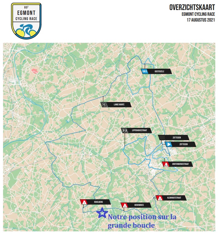 Voici une vidéo du passage de l’épreuve : « EGMONT CYCLING RACE » (anciennement « GP ZOTTEGEM ») à hauteur de la commune de PIJPERZELE. C’est entre le « BERENDRIES » (Michelbeke) et le « REKELBERG » (Rozebeke). Ils ont parcourus environ 60 Km dans la grande boucle. Il y a devant, une dizaine d’échappés. La qualité de cette vidéo est modeste car le temps était pis que jamais (pluie, vent, très gris) !!! Et dans ces conditions, nous n’avons qu’un passage. Bien entendu, un post est prévu en soirée avec images et classement. Course pro de ce mardi 17/08/21. Les « TOTAL ENERGIE » menaient un train d’enfer !!! Merci à JudithF pour la prise de ce fichier.