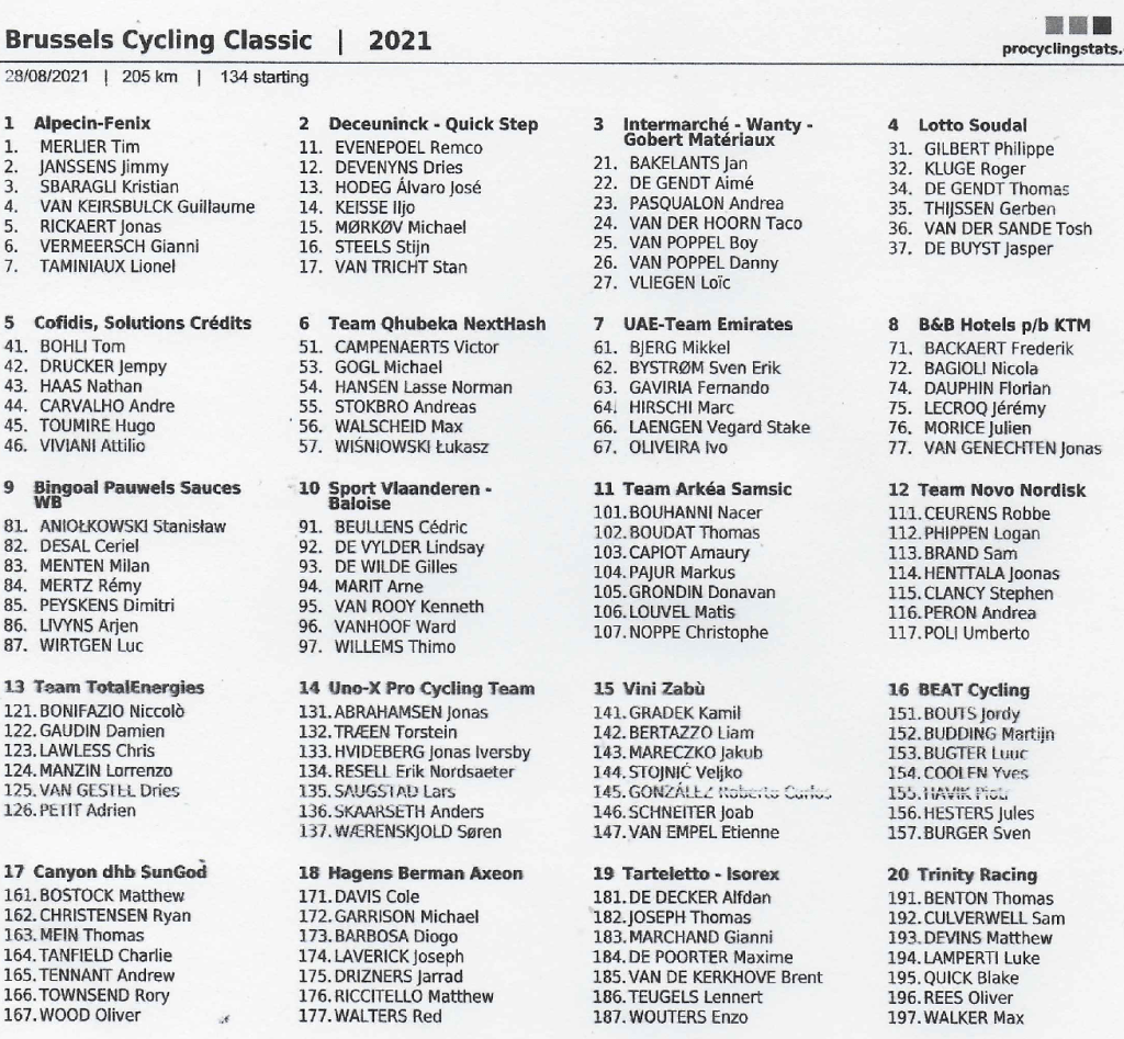 Nous y voilà. La « BRUSSELS CYCLING CLASSIC » c’est ce samedi 28/08/2021. Elle est attendue d’autant plus que les épreuves plus importantes sont assez espacées en ce moment. Elle lance aussi une longue période durant laquelle nous allons être en continu jusqu’en octobre. Alors, ne perdons pas de temps. Voici tout ce qu’il faut savoir ou presque sur l’épreuve. Avec bien entendu les deux passages sur le MUUR ou dans la contrée proche. La « CLASSIC » donne une grande exposition à l’Ouest bruxellois (Seneffe, Ecaussinnes, Braine-le-Comte, Ronquières, Soignies, Silly, Ath, Bassilly, Biévène, Viane, Moerbeke, Grammont, Herne, Gooik, Halle, …). Parfait.