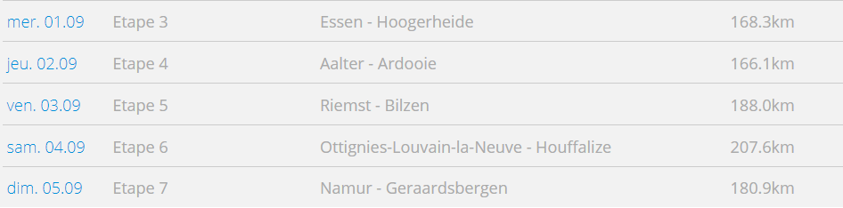 Voilà déjà que la seconde étape frappe à notre porte que nous ne publions que le texte à l’instant. Le temps, toujours le temps. Et puis, nous le répétons, c’est la rentrée scolaire. Concernant le « BENELUX TOUR », voici l’essentiel que vous devez savoir sur le sujet. Nous aurons très certainement deux voire trois équipiers sur l’étape de dimanche. Merci déjà à eux.