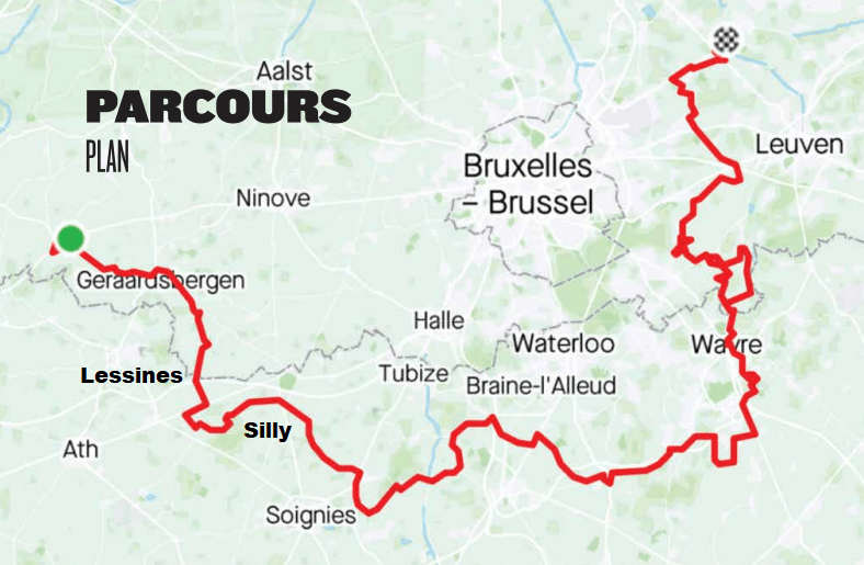 Vous pouvez les voir passer à BRAKEL, GRAMMONT, BIEVENE, SILLY, ENGHIEN, BRAINE-LE-COMTE, … et ensuite, il partent vers le Brabant. Chez nous, c’est entre 12h45 et 13h45, par exemple à SILLY.