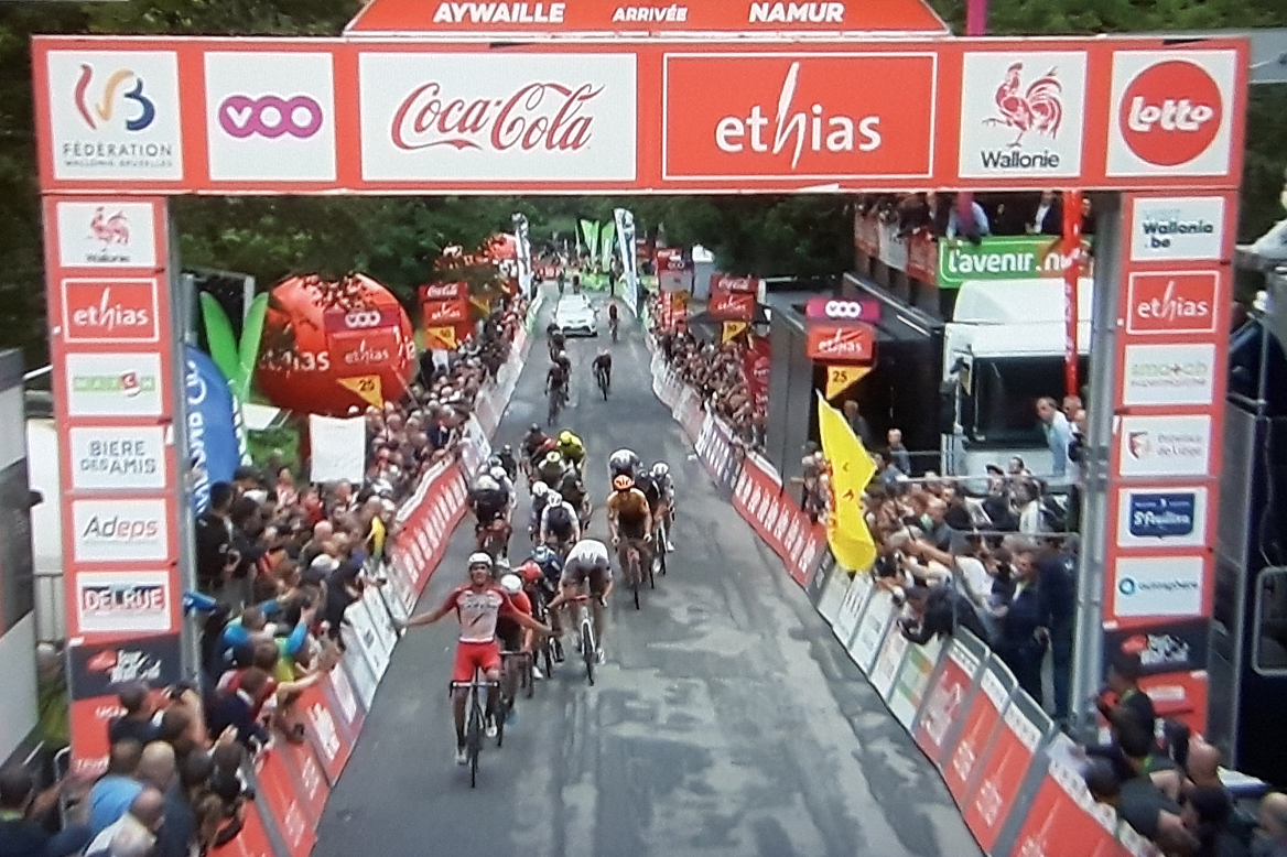 Ce qui était étonnant, c’est cette arrivée sur la Citadelle de Namur. Pas de « Route Merveilleuse ». Mais la montée des « radars ». Une route à lacets qui fait la part belle aux « pilotes de course » qu’il faut freiner en plaçant des dispositifs de contrôle. Et enfin, une arrivée inhabituelle sur cette Citadelle qui a remémoré bien des souvenirs. En effet, c’est la que nous étions en juillet pour l’arrivée de la dernière étape du « TOUR DE NAMUR ». Certes, c’est moins « touristique ». Quoique, les coursiers n’en ont cure. Ils nous ont offert une course de premier choix. De rebondissements en rebondissements, ils seront finalement encore une vingtaine pour la gagne. LAPORTE s’est montré. Il était cité parmi les favoris. Il avait une équipe qui a su cadenasser les velléités les plus farouches. Un vainqueur attendu et facile dans la dernière ligne droite. VERMEERSCH mal placé est 4e. Pourtant il est en forme et son team l’avait bien positionné. Bonus + à VAN WILDER – « DSM ». Ce gamin se ferait mourir sur son vélo. Autre bonus + à Lennert TEUGELS, un « TARTELETTO-ISOREX » qui avait gagné chez les espoirs à Lessines et qui réalise une course au poil. Tout comme MARCHAND. Un dernier « + » à Tim WELLENS dont la 21e place ne reflète pas sa prestation faite d’attaques incessantes. Nous aurions pu citer : POLITT, KONRAD, LIVYNS, DEGENDT A, TILLER, VAN GILS, CAMPENAERTS, BARGUILL, … car tous avaient la volonté de se surpasser. Bravo aux coureurs et aux organisateurs.