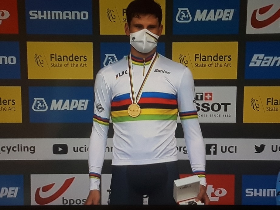 MichelF a certainement assisté à un véritable suspens. Il était sur place. Dans les derniers mètres, aux abords de l’arrivée. Pensez, ses deux favoris VAN AERT et EVENEPOEL qui tiennent le haut du « CLM » jusqu’au dernier coursier. GANNA l’emporte mais les deux belges auront fait honneur au pays tout entier. Vous avez vu la ferveur le long des routes !!! C’était pareil ou presque samedi. Nous avions écrit que sur un tel parcours TROP facile, celui qui allait emmener gros allait l’emporter. BUELENS a vu beaucoup de « 57 ». Vous imaginez le braquet !!! Les CHAMPIONNATS débutent bien. Félicitations à tous !!! Coureurs et spectateurs enthousiastes. Classements complets dans « Vos résultats de la semaine », dimanche prochain.