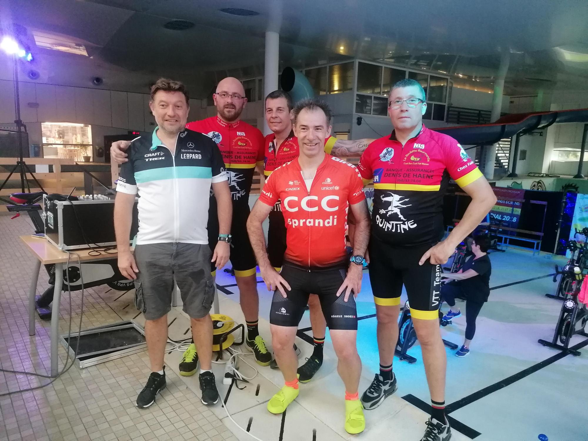 HUMOUR DU JOUR OFF COURSE. Il n’empêche, les vététistes sont POLYVALENTS. Les voilà que dans l’enchaînement de la nocturne, ils s’en donnent sur le Dancefloor de la piscine de Lessines en faisant du spinning. BRAVO les 🚵♂️ !!!