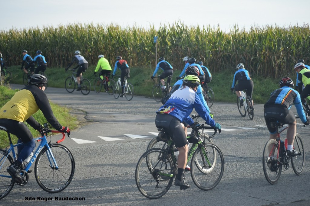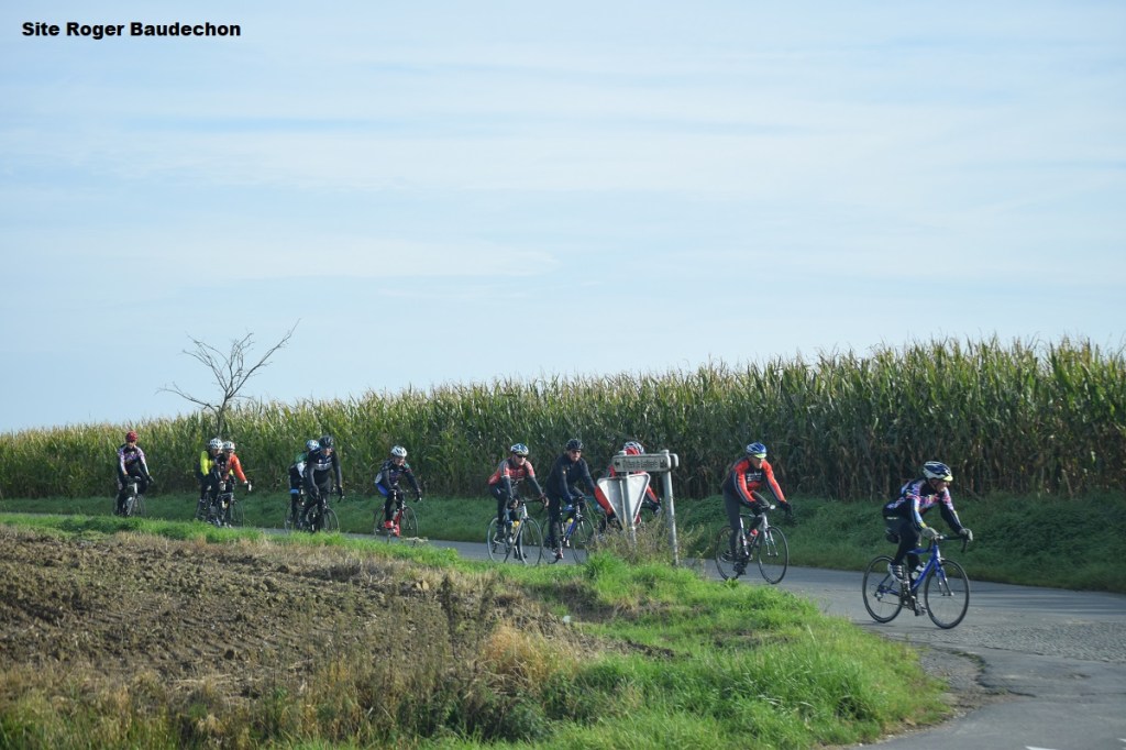 6° le matin, une douzaine le midi. Il faisait bon mais il fallait une petite veste. Il y avait énormément de cyclos sur nos routes. Surtout des grands groupes. Les loisirs étaient également nombreux. Quant aux marcheurs, avec un événement à proximité, il fallait s’attendre à les voir déambuler dans la contrée. Et puis, en cette période de « SAINT-HUBERT », nous avons entendu le bruit des sabots des chevaux très tardivement. Trois groupes de cyclos ont attiré notre attention. Les « SAINT-ROCH » lessinois, bien emmenés par Jean-MarieB, auraient pu laisser la place à MichelG. En effet, pour couper le vent, le second vaut nettement mieux que le premier !!! lol 😉 Et puis les « BOL D’AIR » enghiennois. Le premier venant de Lessines était d’une longueur interminable. Quant au second, même un B1 ne l’arrête pas. lol 👍