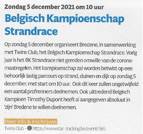 En ces mois de novembre/décembre, la cité balnéaire de BREDENE (et d’autres) feront le plein d’activités axées sur le VTT-MTB. Nous devrions en être !!! Mais probablement pas sur toutes.