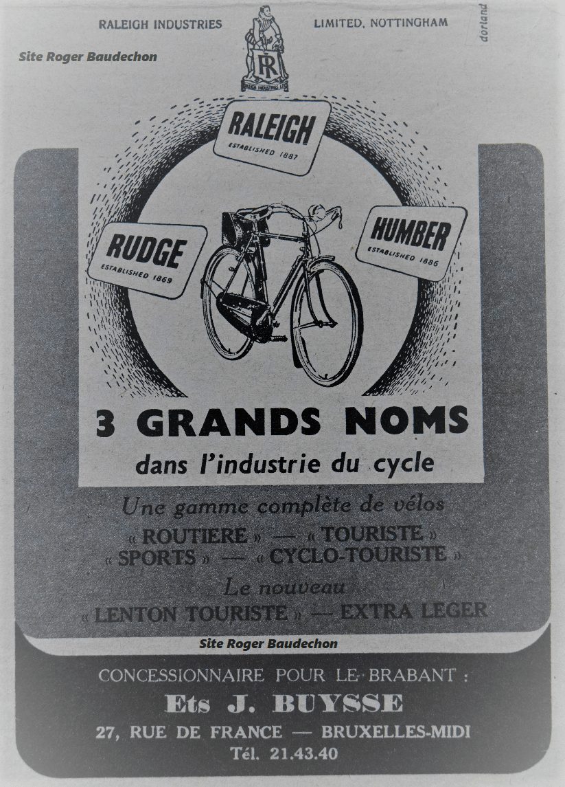 Notez qu’elles étaient vendues chez J BUYSSE à Bruxelles. Nouvelle enquête !!! S’agissait-il de Jules BUYSSE (de la fratrie des BUYSSE), cet ancien coursier de Wortegem qui a mis fin a sa carrière en 1950. Année de la publicité … . (en continuation)