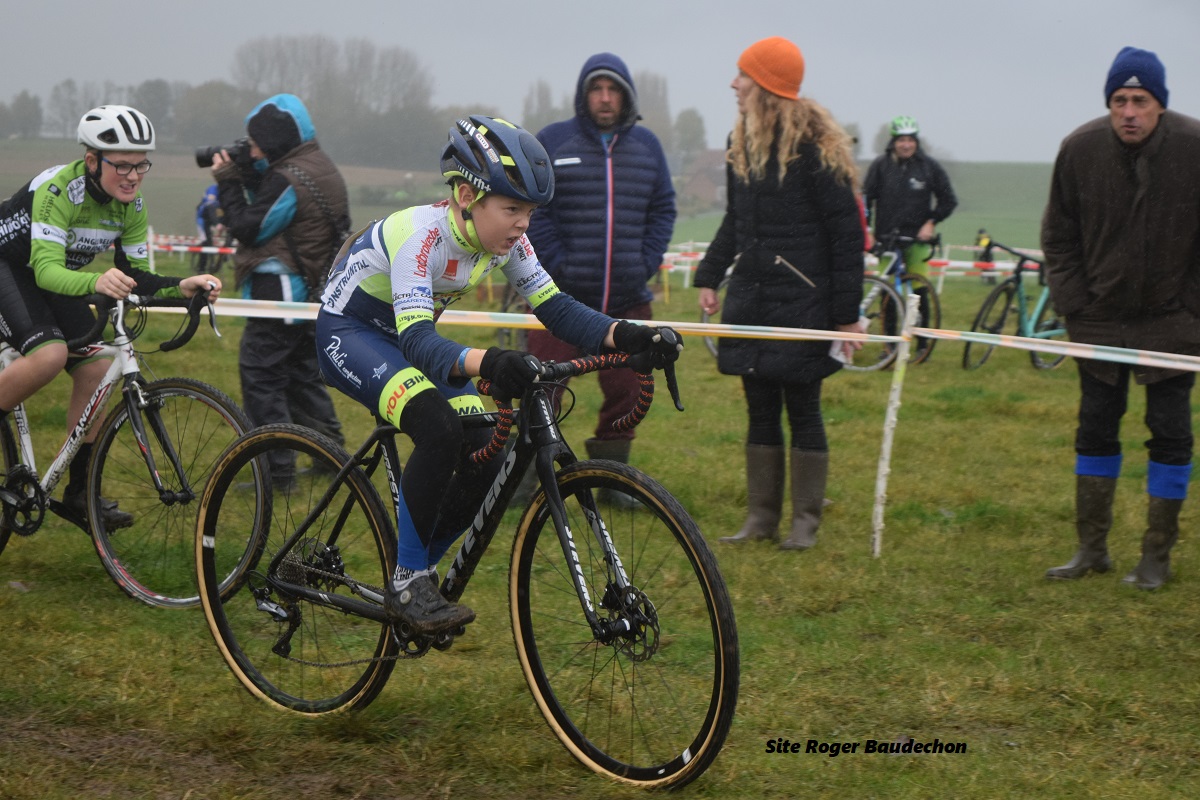Diego SAUVAGE (Isières) est en phase d’amusement et d’entrainement hivernal. Malade récemment, il a néanmoins tenu à rouler à ARC. Quel temps !!! Parti vers la quinzième place, il se maintiendra jusqu’au terme de l’épreuve. Il terminera à la 22e place/42 participants dans la catégorie des « F » (9-10-11 ans). Première sortie. Comme de coutume, il avait sa horde de supporters sur place. Il devrait rouler à OPBRAKEL (« LRC »), WODECQ (« WVZ ») et peut-être d’autres. La « BIKE AVENTURE » FCWB étant relancée (Janvier et février).