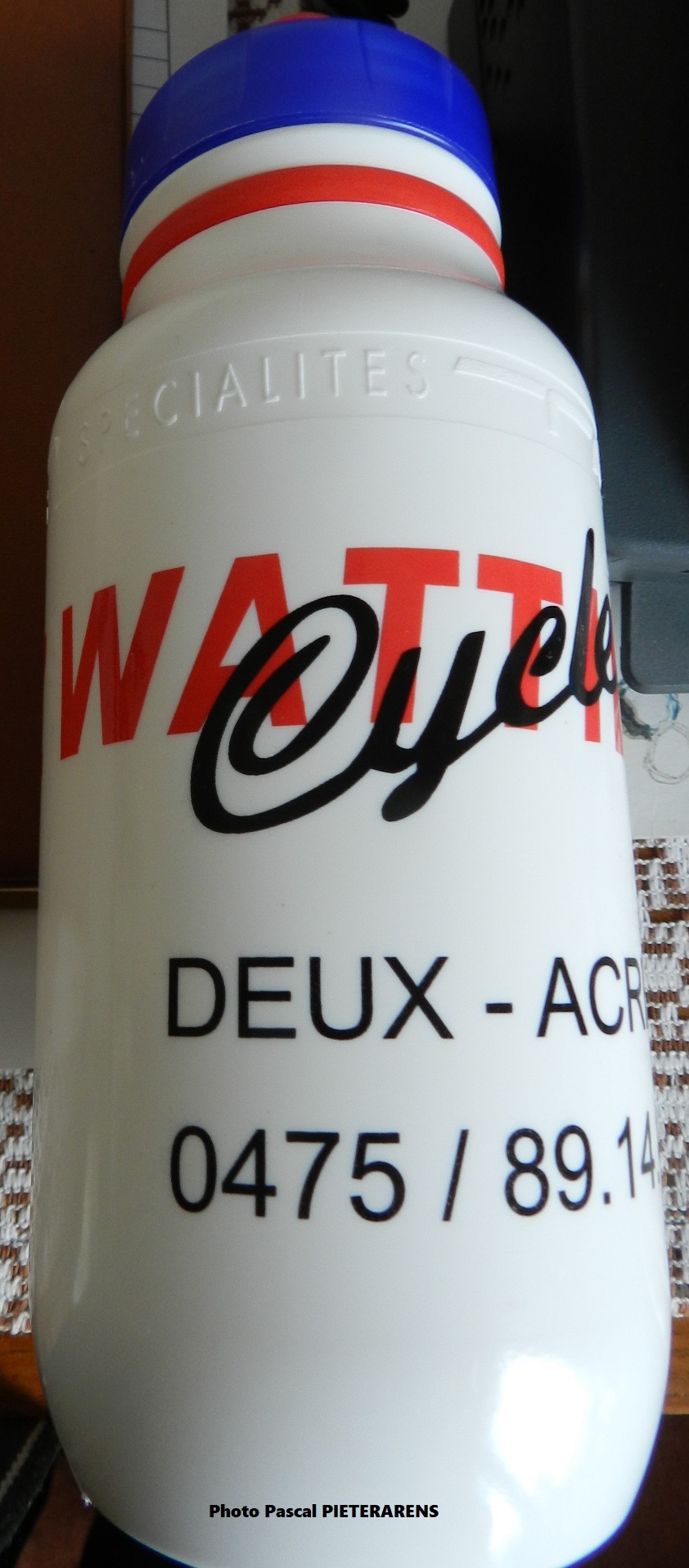Vous avez déjà sur site la musette du commerce de Grégory WATTIEZ. Il se situait à Deux-Acren. Cet ancien coureur est ensuite devenu mécanicien. Il sera dans la prochaine brochure sur les magasins de cycles de l’entité. Oscar, Dany, … , Grégory. Ce sont des générations de commerçants affables, toujours au service de la clientèle. Depuis quelques années, Grégory est sur le stand des vélos « CUBE » à « VELOFOLLIES » (14 au 16/01/2022). Ce salon est programmé en 2022. Merci à PascalPit pour l’image. (Bidon de 2004)