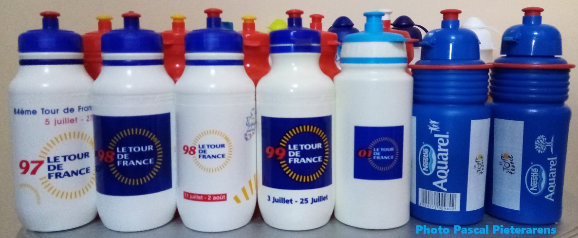 Et dire que nous pensions avoir une collection !!! Nous n’en sommes pas à la première étagère. Des bidons du « TOUR DE FRANCE » de 1997 à 1999. Laissez voyager votre mémoire !!! Merci PascalPit pour ces souvenirs.
