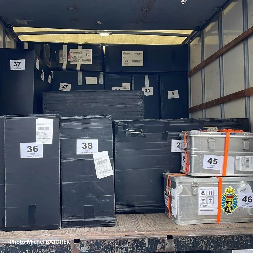 Une fois arrivé sur place, le mécanicien a commencé à remonter les vélos. En effet, les pros continuent de rouler et il y a des reconnaissances du circuit. A voir le nombre de caisses qui ont traversé l’Atlantique, c’est réellement impressionnant. Il y avait du boulot !!! Merci à MichelG et MichelB pour les images.