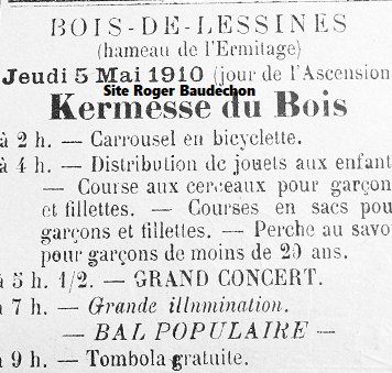 « Au Hameau de l’Ermitage ». Soit en bas de la Rue Gilles. Il y avait un grand quartier d’habitation aux abords des carrières. « Le Carrousel » cycliste était fréquent à cette époque.