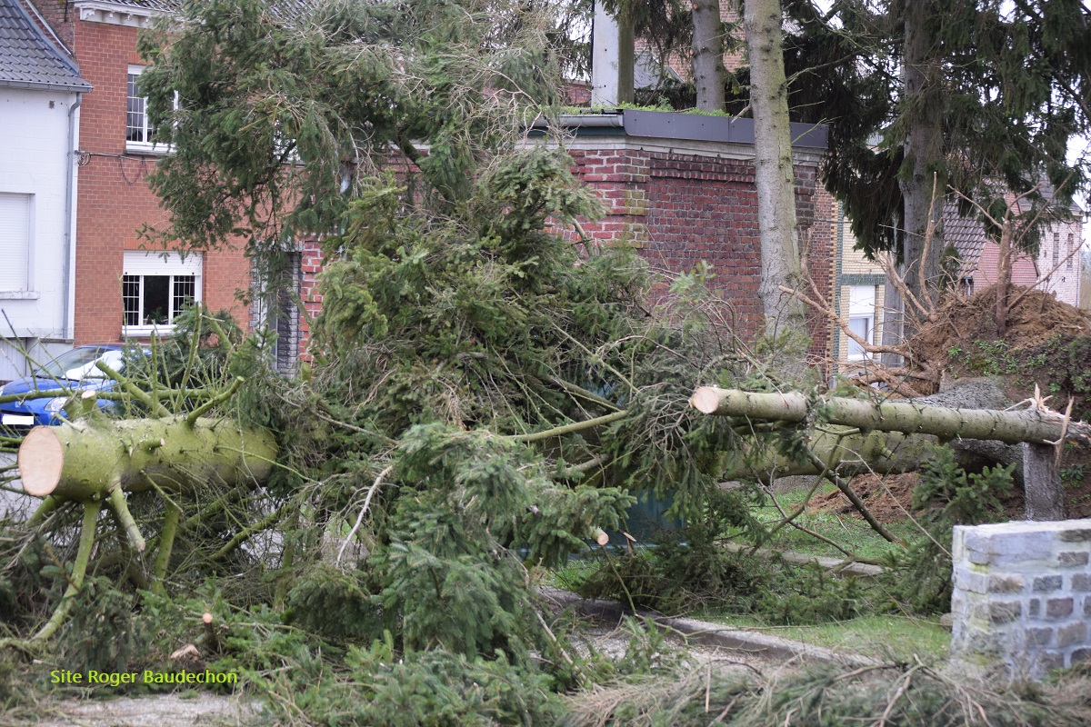 La nuit a été très agitée. Inutile de redire ce que la plupart des médias rapportent déjà. Dans notre entité, des toits ont été touchés, des jardins ravagés (meubles, bâches), des chaussées embouteillées, des fils (électriques ou tv-distribution) détachés/rompus, … mais SURTOUT, énormément d’arbres tombés ou déracinés. Nous avons pu en apercevoir dans la plupart des villages lors de notre récente tournée. La tempête fut bien celle qui avait été prédite. Maintenant, il faut ranger et réparer. Cyclistes attention !!! Il y a encore des reliquats un peu partout. Et le vent sera encore bien présent ces deux prochains jours.