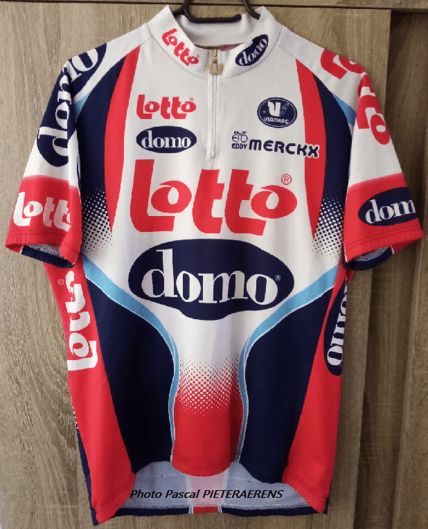 « LOTTO-DOMO » (2003-2004). Les maillots sont presque les mêmes. Les sponsors se succèdent, s’associent, s’éloignent, … très régulièrement. Nous le voyons encore avec « SOUDAL » ou avec « DECEUNINCK ». Mais aussi avec « VUYLSTEKE » ou plus anciennement avec « DOMO ». Le jeu des alliances permet malgré tout au cyclisme de vivre ou de survivre. Tous ne sont pas qualifiés de « main partners ». Mais c’est le cas de « LOTTO » depuis 1985. Le maillot qui est exposé en entête était porté par : BAGUET, BRANDT, D’HOLLANDER, EECKHOUT, GARDEYN, HOSTE, STEEGMANS, VAN IMPE K, VAN PETEGEM, les VERBRUGGHE, … . SERGEANT, CRIQUIELION, REDANT et COLIJN étaient DS. « DOMO » a été partenaire durant deux années. Il était auparavant avec « FARM FRITES ». La valse des marques !!! Ou leur disparition … .
