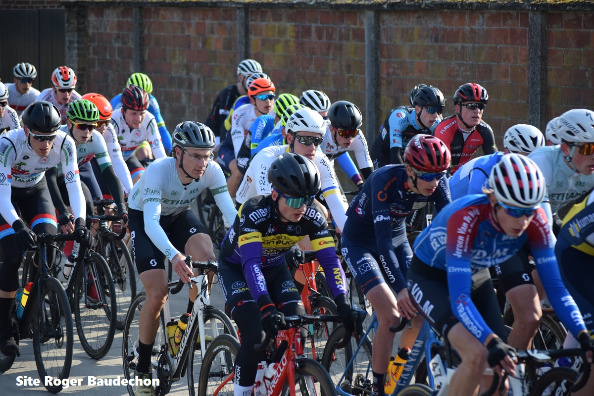 Un choix cornélien s’imposait. Nous rendre à SINT-MARIA-LIERDE ou à VOLLEZELE. Finalement, ce fut le second. Le circuit habituel a été emprunté par 154 coureurs. Départ du stade de football. Parcours par VOLLEZELE centre et les abords de GAMMERAGES. Une grande partie de la route principale NINOVE-ENGHIEN. Dès l’entame, David DESMECHT met le feu aux poudres. Il part seul. Dans les kilomètres qui suivent, d’autres tentent de le rejoindre, dont le futur vainqueur. Le peloton est groupé. Nous notons la présence de : DEBUY, LOWIE, TIMMERMANS Tom (CB) et Tim, VANDENBRANDE, DELAHAYE, EVRARD, BREYE, MORTREUX, SINOY, SELFA, SEYE, PAQUAY, … . Derrière, c’est la débandade. Il y a des coureurs partout sur plus de six minutes. Au second passage, l’écrémage continue. Devant, ils sont une bonne vingtaine. Le rythme est soutenu. Il y en a qui rentreront comme le Champion de Belgique. Nous n’avons pas pu assister à la fin de l’épreuve. Et nous n’avons pas été près de l’arrivée. DEMAN Brem (19 ans-VDM-TRAWOBO) l’emporte devant HEYLEN et VERCOUILLIE. Il y avait un moment que nous n’avions plus vu un tel paquet de coursiers (El Sc/Esp). #NouvellesTenues #Top