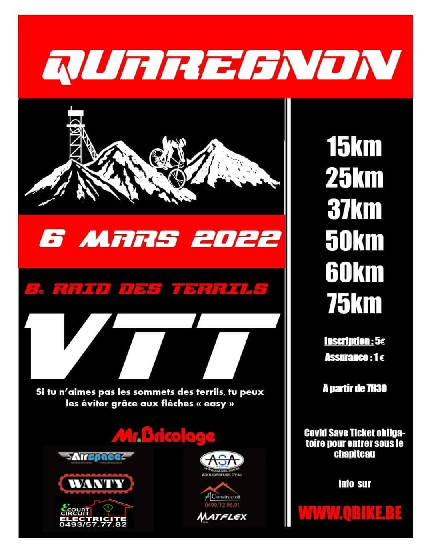 La seconde partie du « VTT TEAM LESSINES » a pris la direction de QUAREGNON pour rouler le « RAID DES TERRILS ». Des carriers au pays des mineurs. La randonnée devait être intéressante car sur les clichés, il y a des vues « aériennes ». Il est vrai que la région des charbonnages permet de pratiquer le TT dans de bonnes conditions. Choisir entre ISIERES et QUAREGNON ne devait pas être un choix facile. Le connu ou l’inconnu. La découverte est souvent gage de motivation. Bonne semaine à tous.