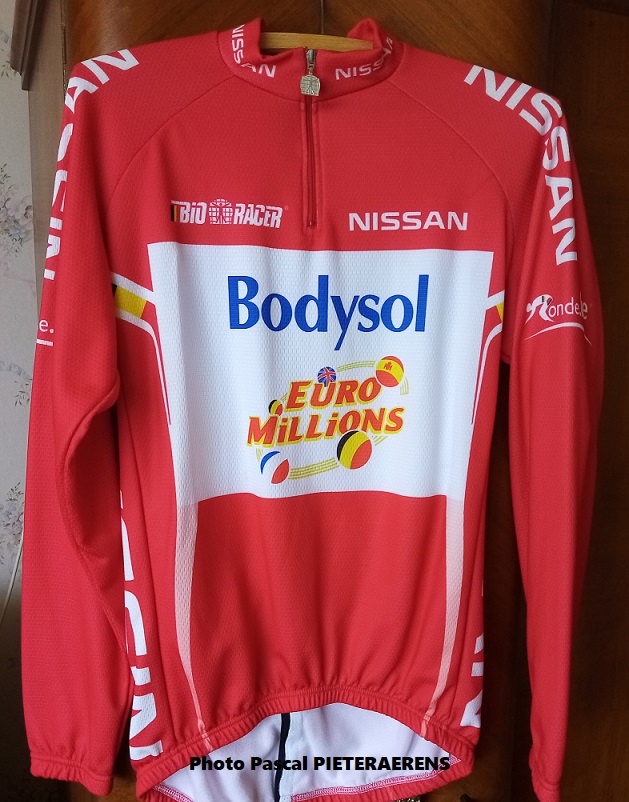 En 2008, Fabio POLAZZI avait été champion de la province de « BRUXELLES-NAMUR-LUXEMBOURG ». Il avait aussi gagné le « GP CRIQUIELION ». Ce maillot rouge (sprints intermédiaires) est celui qu’il a porté sur le « TOUR DE BELGIQUE » entre la deuxième et la quatrième étape. Il a fait partie de la continentale « BERGASOL », « BODYSOL » et variantes – « VERANDA WILLEMS » et « JOSAN ». Pascal PIETERAERENS a été son directeur sportif (PCW). POLAZZI est passé par « WALLONIE-BRUXELLES » et variantes de 2011 à 2013. Un coursier qui était le camarade de Frank VANDENBROUCKE.