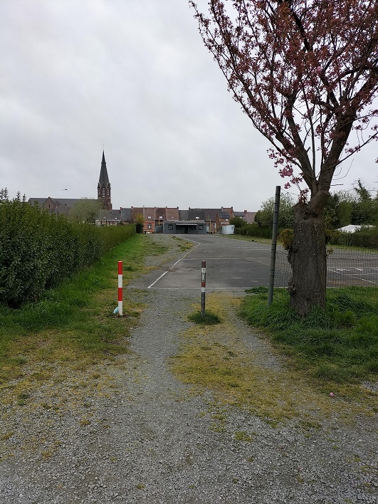 Photo. Tout se monte au terrain de jeu de balle du Chemin d’Enghien/Chée Gabrielle Richet. Et pour les réparations … un autre sponsor avec « S BIKE ».