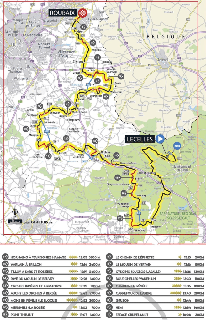 111 km – Dép à LECELLES 11H45 et Arr à ROUBAIX à 14h45.