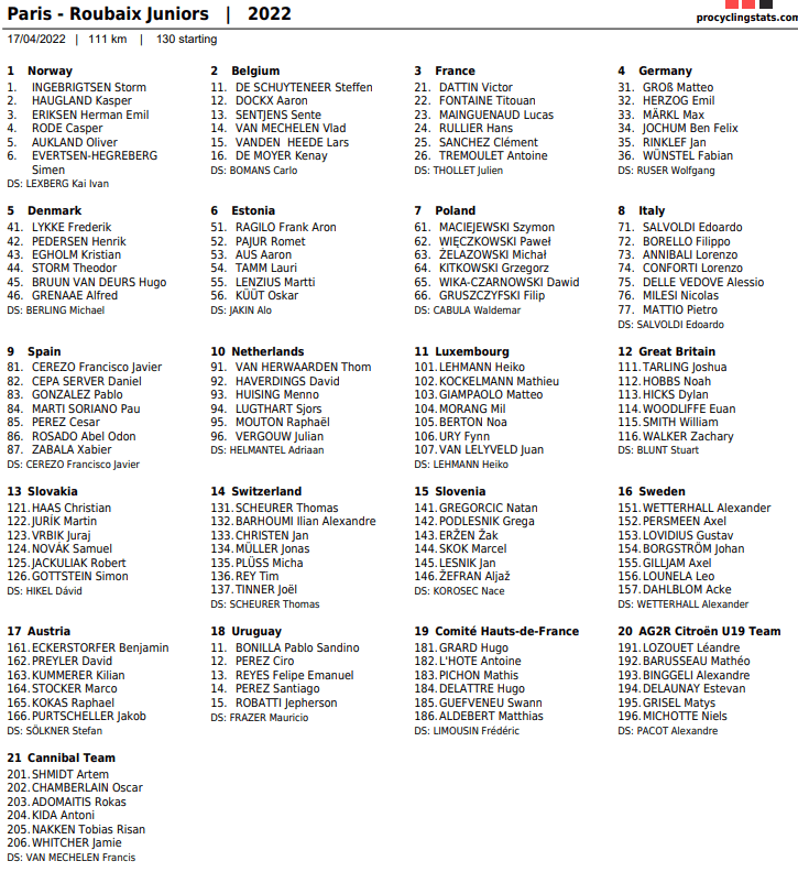 Et puisque les estoniens nous plaisent bien … (ils logent à la « Ferme Blanche » – Lessines – depuis plus de quinze jours). Les coursiers ont réalisé la reconnaissance de « P-R » ce jeudi (Photo sur site organisateur). Après Flobecq et leur suprématie, nous attendons de voir ce que cela va donner sur une épreuve nettement plus internationale. Notez que PAJUR (vainqueur flobecquois) avait déjà fait un TOP 10 sur un mondial. L’épreuve n’est pas retransmise en TV. « DIRECT VELO » sera présent. Par contre, il est annoncé que les grands faits de course seront également diffusés sur la page Facebook de « P-R-J ». Généralement, les jeunes belges font de bons résultats.