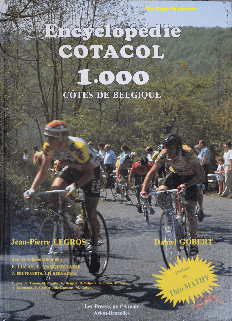 Que dire de cette « brique » ??? Qu’elle est EPAISSE. Facilement 10 cm pour 620 pages de lecture. La précision à chaque ligne. Les auteurs : LEGROS ET GOBERT. Aux Editions des Presses de L’Avenir – Arlon/Bruxelles. 1990. L’encyclopédie est rare. Quatre années de labeur ont été nécessaires pour clôturer l’ouvrage. 8000 exemplaires sont sortis de presse. Jean DEMARET était un grand amateur de cols. Avec MichelB, JosseD, RenéV, LucienD, … ils en ont monté des sommets. Il n’est pas étonnant de retrouver l’ENCYCLOPÉDIE « COTACOL » dans sa collection. Merci Jean !!!