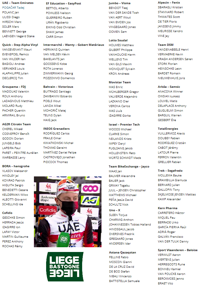Dernière nouvelle. Pas de POGACAR à L-B-L. Sa belle-maman est décédée d’un cancer. 🙏