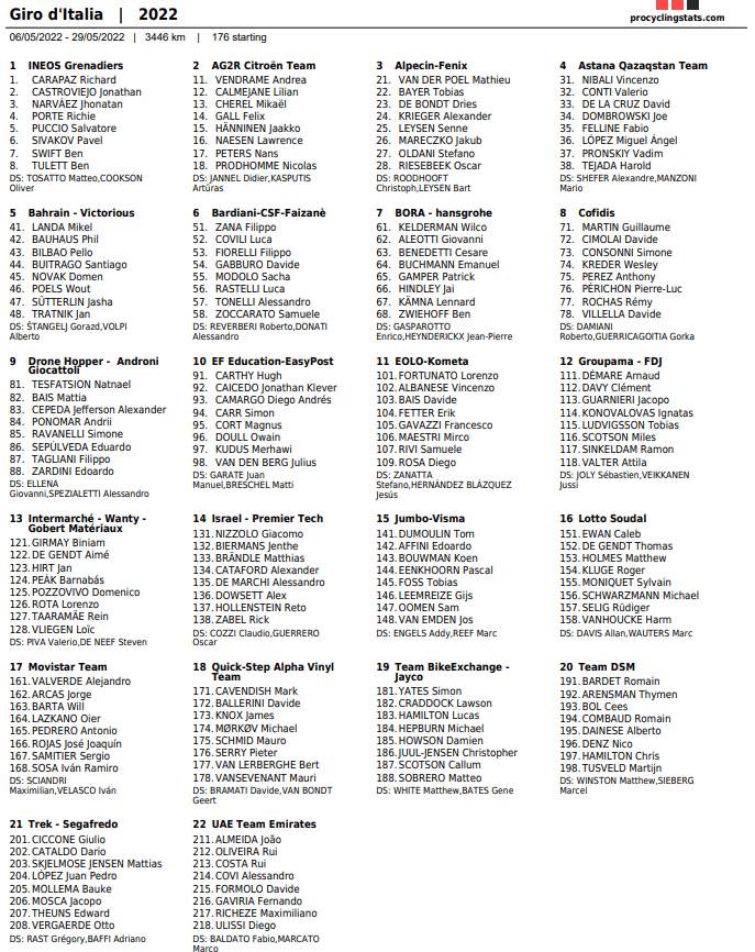 Partants. (Merci à PRO CYCLING STATS où vous trouverez plus encore)