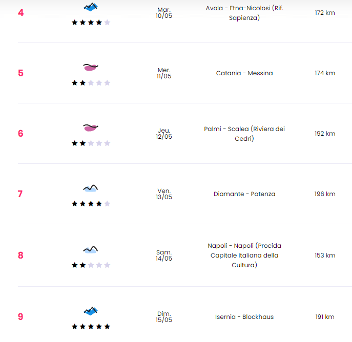 Pour toutes infos complémentaires, nous vous invitons à visiter le superbe site du « GIRO ». Très beau, très simple et très complet. Vous pouvez même y suivre la course en direct. Départ de l’étape 4 dans 7 minutes !!!