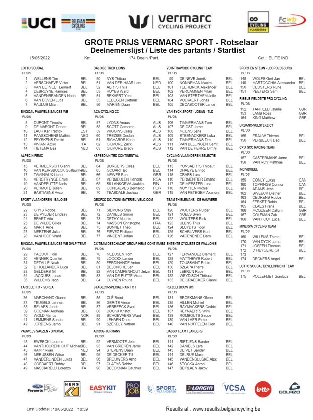 Le « GP VERMARC » aura lieu à ROTSELAAR ce 15/05.