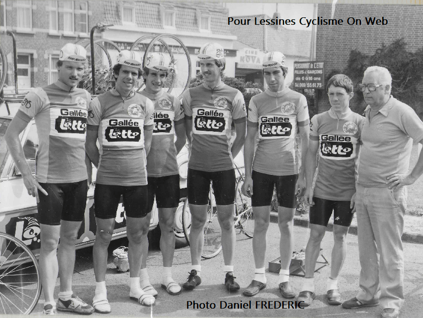 Le 4e à partir de la gauche est Rudy WOUTERS qui est devenu pro (1 an) chez : « LA WILLIAM-FONDUA-EUROCLEAN » (1989). Un coursier qui a également fait la « COURSE DE LA PAIX » en 1987. C’était un costaud.