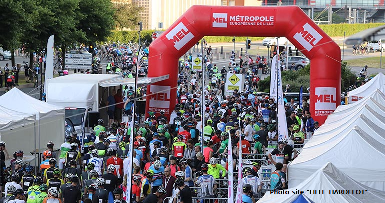 Photo. Elle appartient à l’organisateur et est publiée avec son accord. Le départ de « Lille Grand Palais ». S’il y a trop de rouleurs, des vagues sont envisagées afin de mieux réguler les flux.