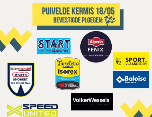 PascalPIT nous fait remarquer que ce mercredi, il y a une kermesse pro à PUIVELDE. Une localité située entre Gand et Anvers. Dommage qu’il faille faire quelques bornes (80 km x 2) et que le prix des carburants est de plus en plus prohibitif. Cet après-midi, plus que les dix-neuf circuits ou le kilométrage, ce seront : le SOLEIL/la CHALEUR et les GROSSES POINTURES qui vont faire que cette épreuve sera difficile. PascalPIT signale que les « GEOFCO-DOLTCINI-MATERIEL VELO.COM » seront une douzaine en lice. Quand on voit que Stan DE WULF l’emporte hier à RUDDERVOORDE, on voit que même sur les kermesses, tout le monde veut gagner. DE VRIENDT second sera présent. De même que VAN MOER. Voici les partants (liste en attente) : (169 km – Dép : 14h00)