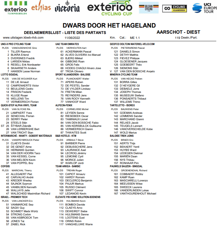 Un nouveau weekend s’annonce emballant. Et avec lui, encore des épreuves qui seront pimentées. Comme nous entrons dans les examens, il est probable que nous ayons peu de retours. Ce samedi, « DWARS DOOR HET HAGELAND » et dimanche, « EURO SHOP ELFSTEDENRONDE » promettent des surprises. Deux manches de la « EXTERIOO CYCLING CUP ». Voici quelques informations à leur sujet.