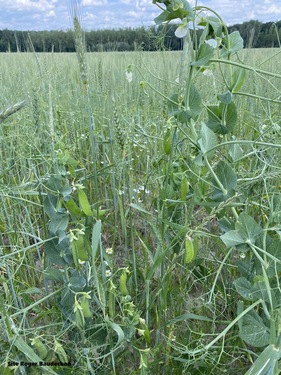 Les grosses chaleurs dans les champs de blé … (envahis par les pois). En vélo = hydratation maximale, couvre-chef et protection solaire. ⚡