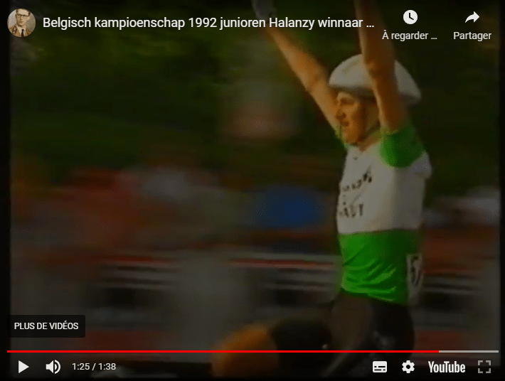 Alors qu’il se trouvait à PLOEGSTEERT, HaroldD a pu découvrir quelques reliques de Frank VANDENBROUCKE. Ce maillot de « CHAMPION DE BELGIQUE », dans la catégorie des JUNIORS, a été conquis à HALANZY en 1992. Ses dauphins furent Geert VERDEYEN 2e et Hendrik VAN DIJCK 3e. Une course qui en disait déjà long sur ses capacités. La banderole de « CHAMPION DE BELGIQUE » des DEBUTANTS est en-dessous (HALANZY 1991).