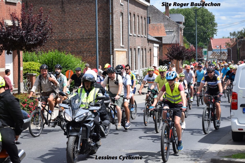 Une dame nous a dit : « Quelle foule !!! Il n’y en avait pas un tiers la semaine dernière à TROOZ ». Et de lui répondre : « Mais Madame, ici, c’est FLOBECQ et le PAYS DES COLLINES ». Un haut lieu de tourisme et de cyclisme !!! Elle acquiesça. La Place de la Station était bondée. La prairie située à l’arrière l’était tout autant. C’est là que les stands commerciaux et le chapiteau avaient trouvé refuge. De nombreux parkings étaient disponibles dans la proximité. Par un tel beau temps, les cyclistes avaient répondu très nombreux à l’appel des organisateurs. Sur la ligne de départ, une fanfare hétéroclite jouait des airs endiablés. Adrien JOVENEAU (animateur) escaladait un 4×4, Manuel CLEMENT (chanteur) prenait un bain de foule et Fabian LE CASTEL (« Grand Cactus ») s’identifiait à Gavroche avec sa casquette pépère. Des déguisés, des électrisés, des très sportifs, des jeunes, des âgés, … , il y en avait de toutes les sortes dans ce long ruban de deux-roues. ClaudeD, IsabelleM, ThierryCOX, ChristianC, JérômeS, JhonnyL, … les lessinois étaient là !!! Quel plaisir. Le cyclisme a encore de beaux jours. FLOBECQ fut une réussite … totale. Avec, pour assurer la sécurité, une police montée … de cycles « SPECIALIZED » (VTT). Des signaleurs bénévoles et ceux de l’ALLIANCE CYCLISTE FLOBECQUOISE. Au retour, les participants semblaient aux anges. Le parcours, de prime abord difficile, a été avalé facilement. Enfin, l’animation et le podium furent la cerise sur la gâteau. Bravo FLOBECQ. Bravo « VIVACITE » (radio). Bravo aux PARTICIPANTS. (une édition du même genre dans notre entité en 2023 ???) Prochaine étape LES TROIS VIERGES (Gouvy), le 09 juillet 2022. PECQ et POPUELLES (WAPI) sont dans le programme annuel. Notez-le !!!