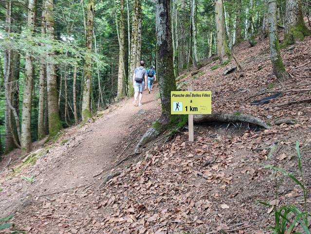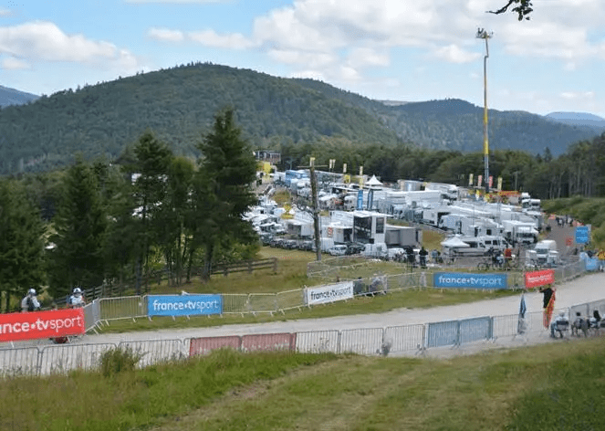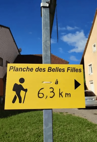 Ce jour-là, le temps n’est pas terrible et il m’est impossible d’approcher le pied de l’ascension, la route étant fermée depuis la veille ! Je suis à 6 km du pied, trop loin pour m’y rendre mais je me dit que je retenterai ma chance. Bingo, le tracé du Tour de France 2022 est connu et la Super Planche figure au menu. Sans hésiter, je réserve un appartement à proximité (15km) ; pour être sûr de pouvoir y accéder, j’emporte mon vtt dans la voiture au cas où. Finalement, je n’en aurai pas besoin. Tout comme en 2019, les routes principales sont barrées depuis la veille ; je consulte Google et questionne quelques habitants des villages avoisinants. Comment s’y rendre autrement par que la route ? Je décide de tenter ma chance au départ de Lepuix ; je gare mon véhicule sur le dernier emplacement d’une placette, à proximité d’une fontaine typique. Les plus pessimistes me prévoient un effort pédestre de 3 heures ! Qu’importe, il fait beau (chaud) et je suis motivé ; après tout, je suis venu pour ça !