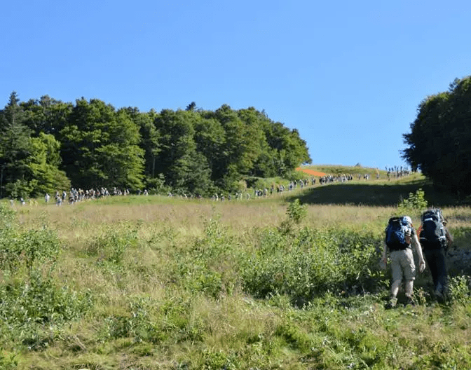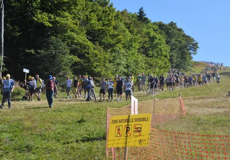 Une fois les coureurs passés, il faut redescendre par le même chemin. Et là, ça se corse vu le monde de dingue qu’il y a ; ça dévale de partout !