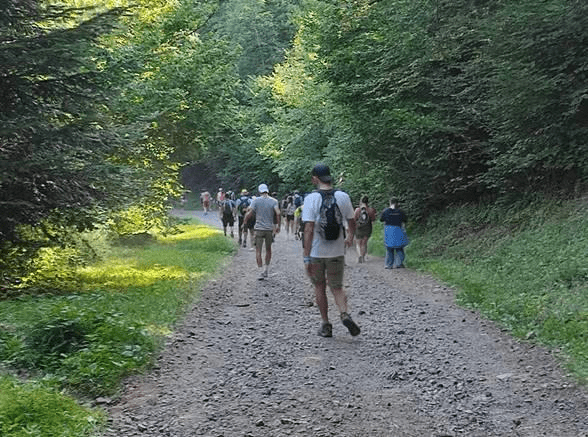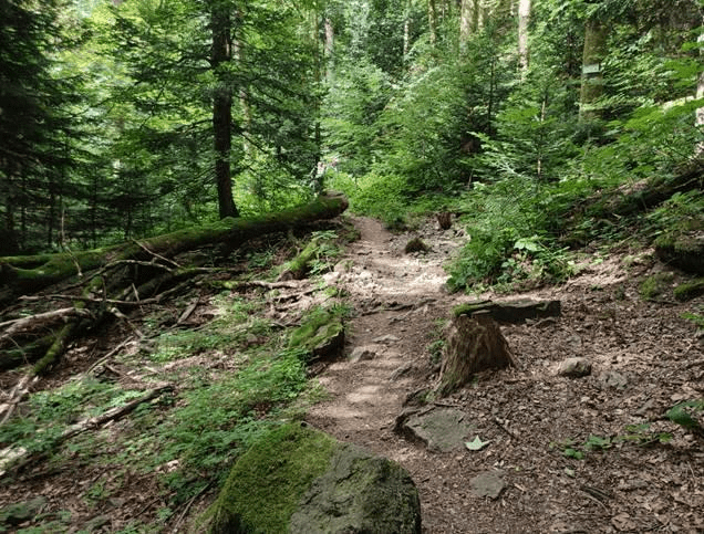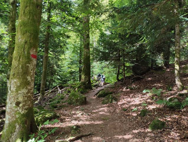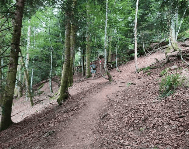 - C’est à partir de ce point que ça va se corser pour les derniers km ; plus de chemin mais un sentier balisé d’un-demi mètre, parsemé de racines, pierres et branches à tout va !